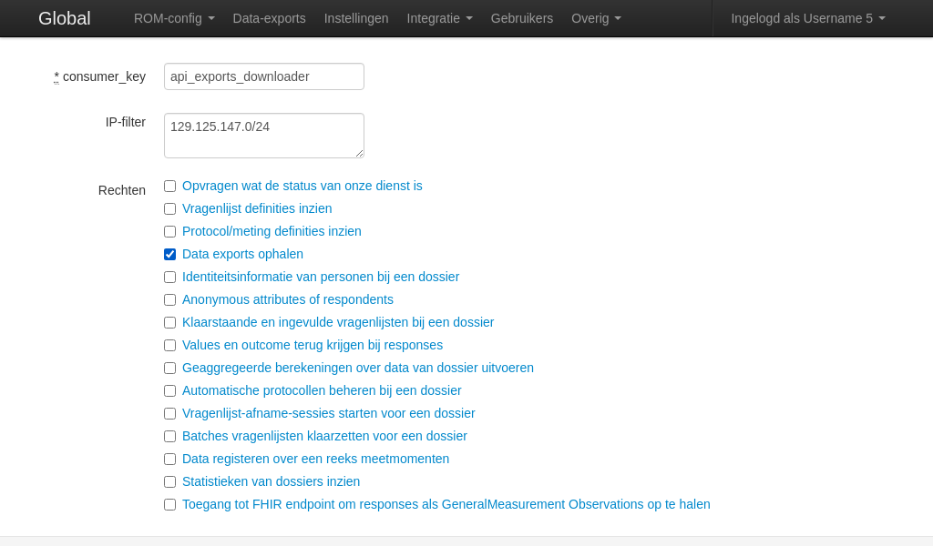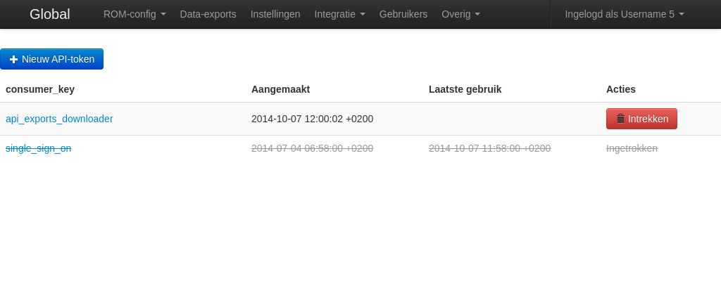 After creation, the consumer_secret will be shown only once. Consider this as a password, and thus never send it unencrypted to colleagues. Ideally, the code would be copied straight from RoQua to the configuration of the target system.
