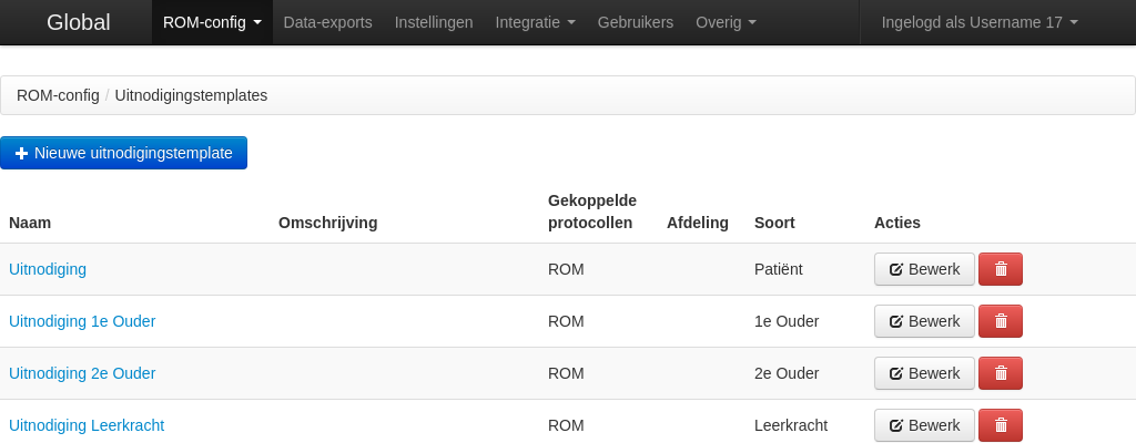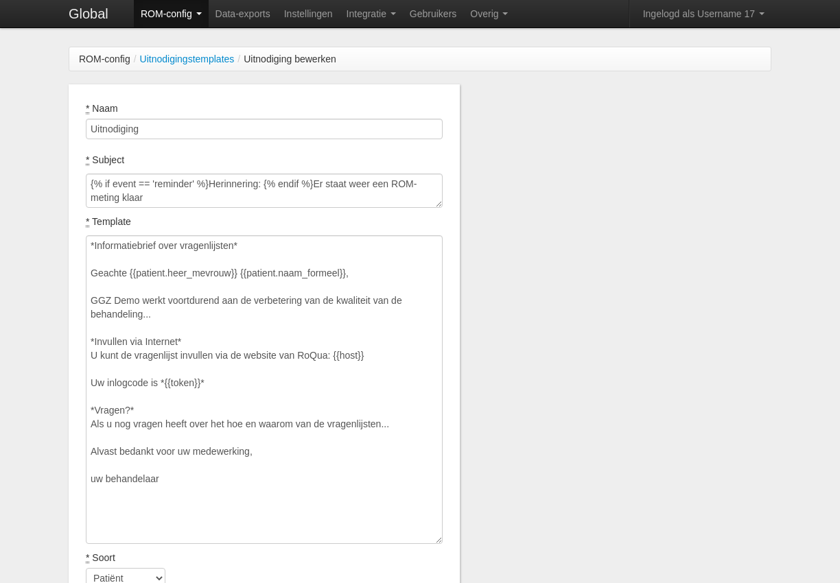 Here you can edit the templates that are used to invite a patient or other respondent.